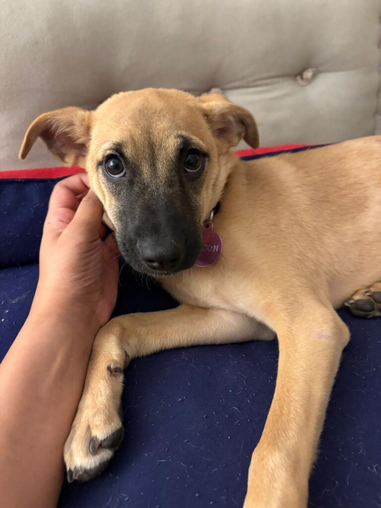 Bacon is the sweetest puppy you will meet. She’ll gently snuggle with you in bed, she’ll run around the house with your dog (she LOVES other dogs), and she’ll make the biggest eyes at you when you catch her being naughty!