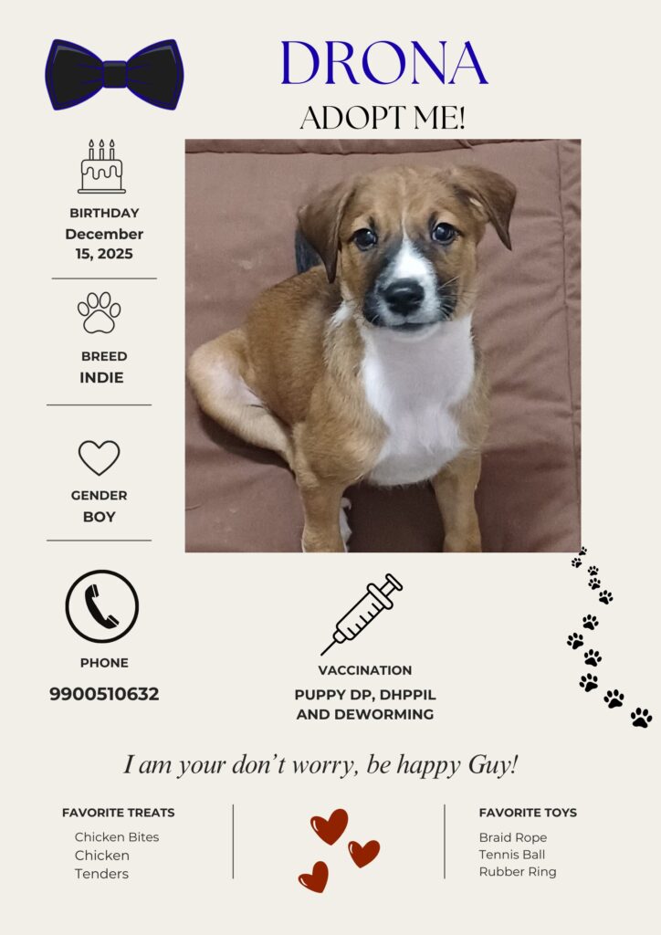 I am Drona, a loving and caring buddy who loves long walks. I love to explore and learn something new everyday.