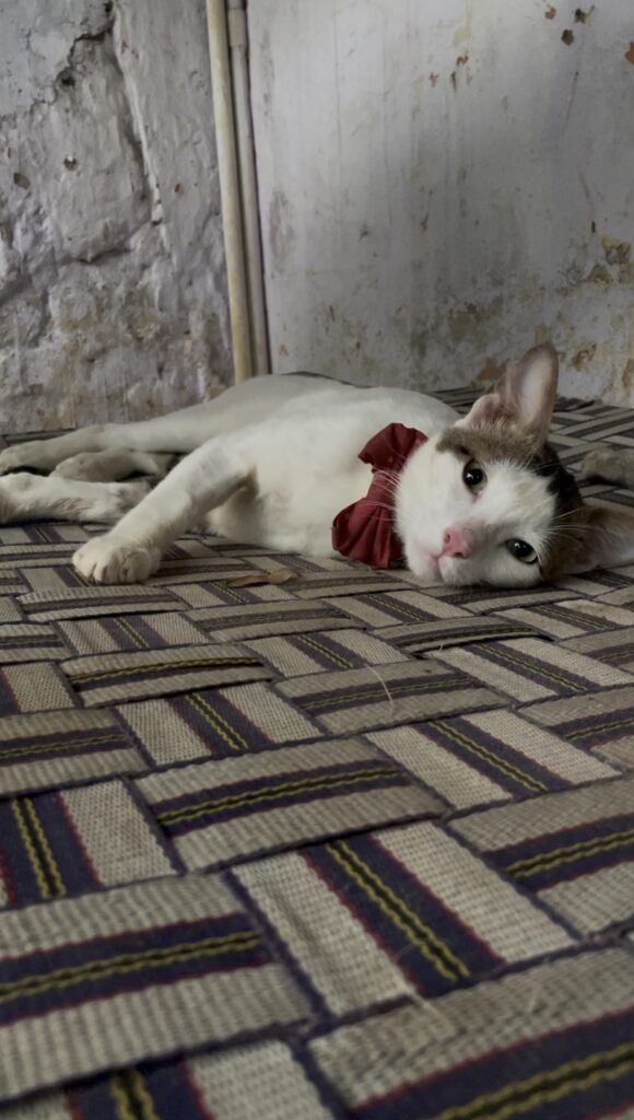 A victim of hit and run, he was paralysed neck down and despite a bad prognosis fought very hard to not only walk, run and jump again but to also love humans and other cats. Gola gets zoomies twice a day but is otherwise mostly asleep. He’s also litter trained.