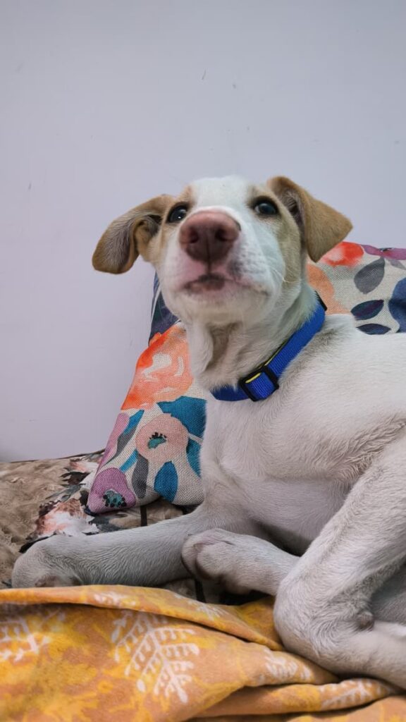 Guddu is a cute 4 month indie boy. He is a quick leaner and very docile. he has got a pink nosy and beautiful brown eyes. He was abandoned in a park and was frantically looking for his owners. That’s when I met him. In that moment of safety, the fear left his eyes, and he finally fell into a peaceful sleep. But Guddu can’t stay in the park. At his age, the streets are too harsh for such a gentle soul.