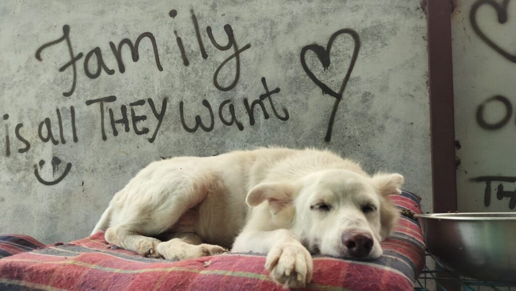 POV: His world turned upside down when his owner abandoned him and a vehicle accident left his front leg twisted. He can never put it down again – so he walks on three legs, with all the strength and spirit in the world.